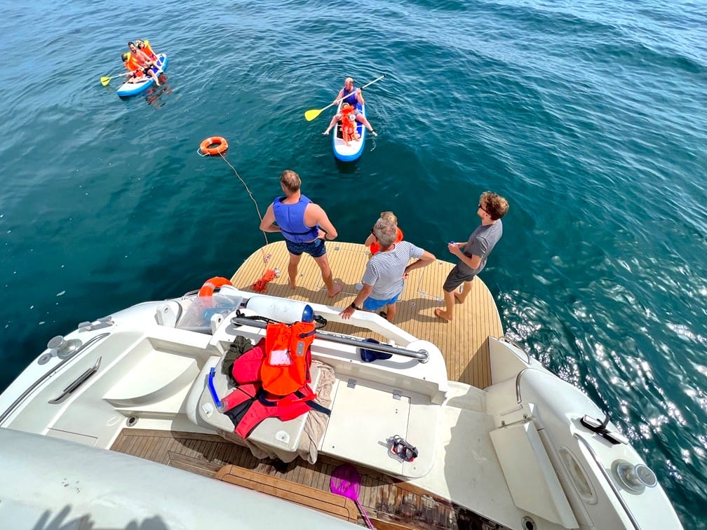 All boats have SUP on board, as well as WiFi, bluetooth and sound system. All yachts are very spacious and have galleys, lounges and shaded areas.